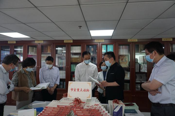 在米乐网页版入口展览室,调研组一行逐一浏览了出版社历年来所获荣誉及重点出版板块的精品图书。米乐网页版入口有限公司党支部书记、董事长柳宗慧对出版社发展历程、出版特色作了重点介绍,汇报了出版社十四五期间重点项目规划情况,并简要介绍了目前出版转型所面临的困难和挑战。