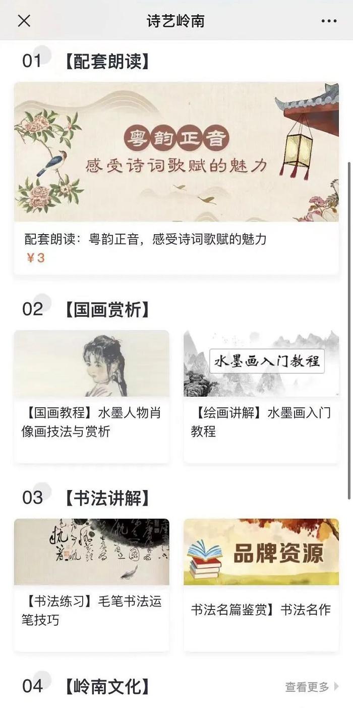进入小程序后,即可在朗读诗文、国画赏析、书法讲解、岭南文化等板块里畅游,由浅入深带你读懂岭南文化,让日历不止于日历,更是一趟岭南文化之旅。