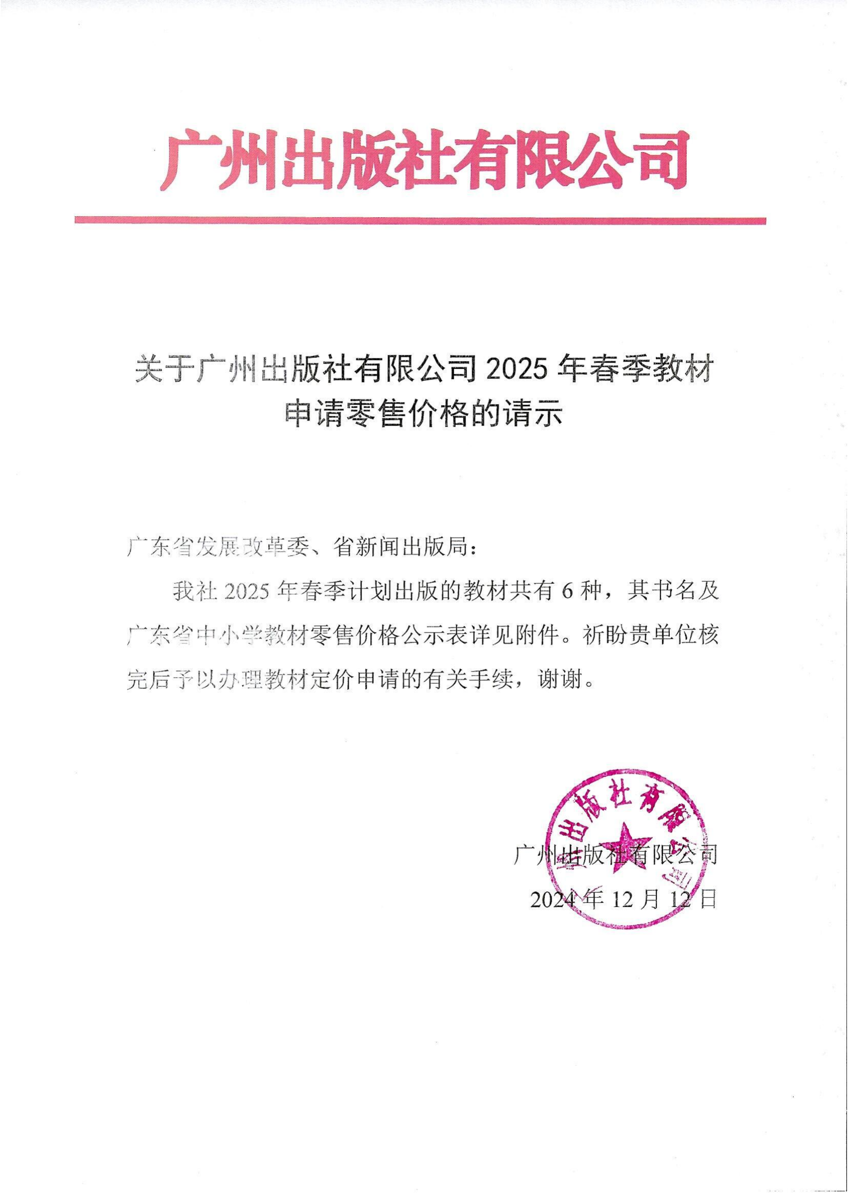 关于米乐网页版入口有限公司2025年秋季教材申请零售价格的请示