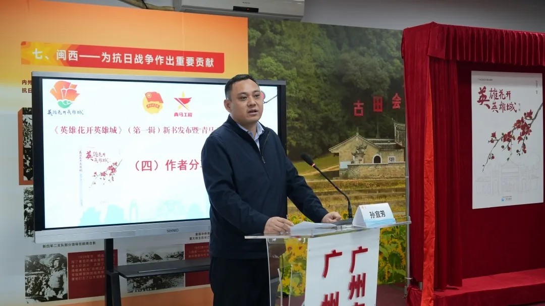 《英雄花开英雄城》(第一辑)的作者孙宜芳副教授分享了自己的创作故事和心路历程,他为创作此书走访了广州的大街小巷和各处红色遗址,广泛查阅各类历史资料和档案文献,书中每一个历史故事背后,都是革命先辈爱国志士用鲜血和信仰书写的不朽篇章。最后,作者号召青年学员要以史明鉴、以史思辨,传承好广州的红色文化精神,为祖国贡献自己的青春力量。