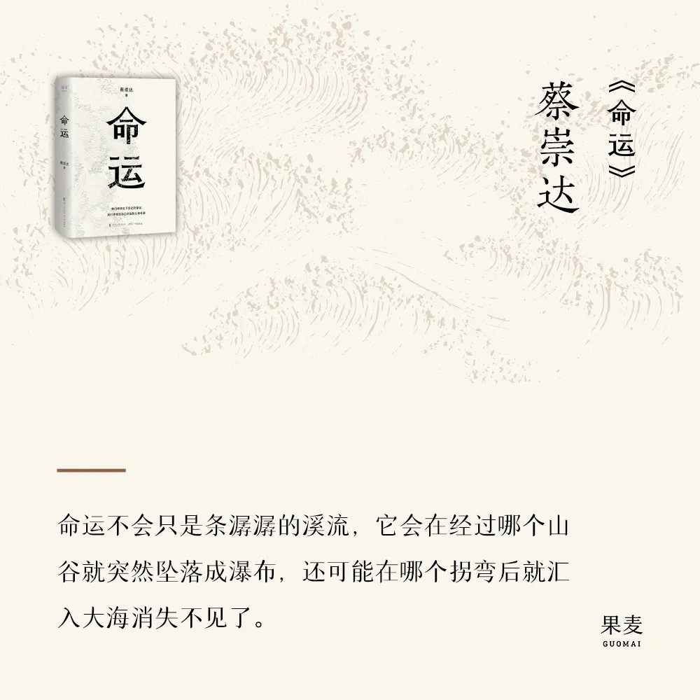 小说《命运》的作者蔡崇达,1982年生于一个认为“笔能点开天地,为灵魂开路”的闽南小镇。蔡崇达16岁便展露文学天赋,人称“天才达达”;大学毕业后先后就职多家知名媒体,24岁便担任《周末画报》新闻版主编;27岁任《GQ》中国版报道总监,是全球17个国家版本的《GQ》最年轻的报道总监。