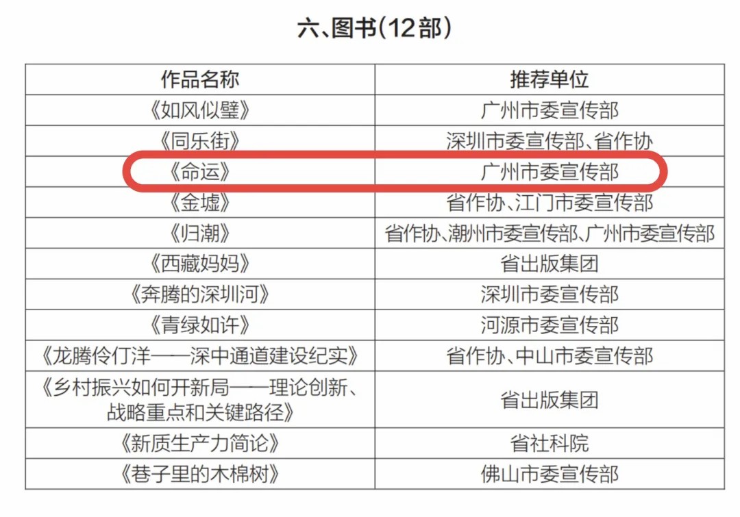 喜讯 | 《命运》入选广东省第十三届精神文明建设“五个一工程”“优秀作品奖”