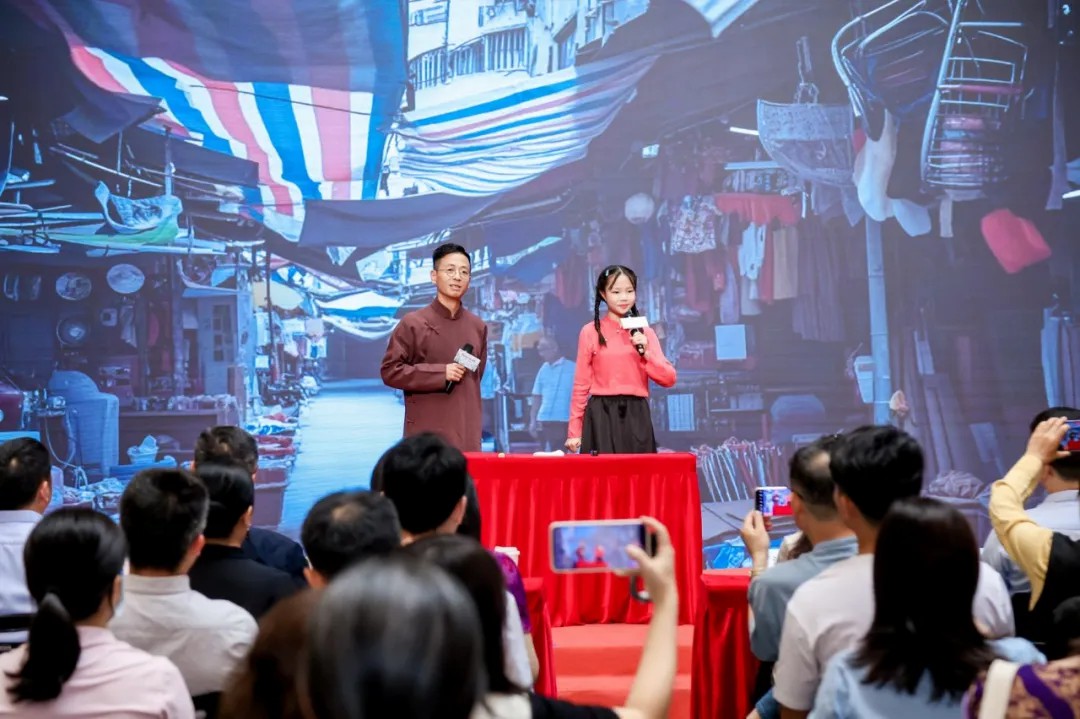 粤语讲古艺人彭嘉志和他的学生张芷晴,以传统的粤语讲古形式,生动演绎广州故事《雅马哈鱼档》,让经典文学作品在新时代焕发出新的活力。
