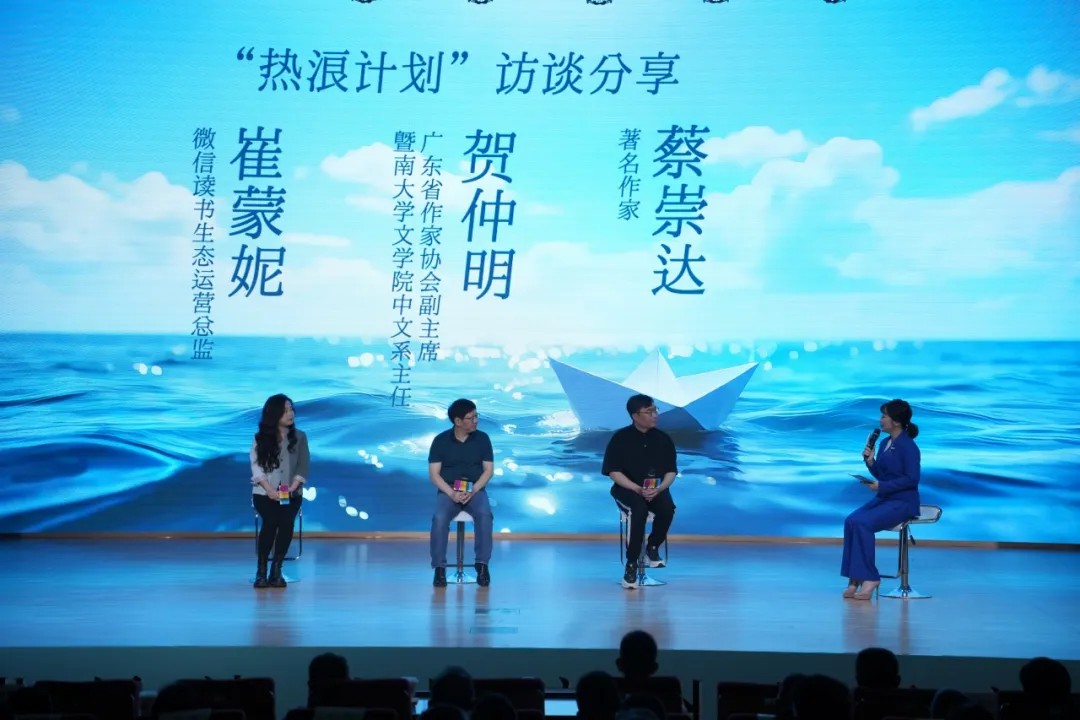 活动现场播放的青年作家阿措、胡安焉、龚万莹的期许视频,传递出创作者们对 “热浪” 的期待;而蔡崇达与广东省作协副主席贺仲明、微信读书生态运营总监崔蒙妮共同畅谈“热浪计划”,则围绕计划实施路径、微信平台传播优势及未来发展方向展开,勾勒出 “热浪” 奔涌的清晰蓝图。
