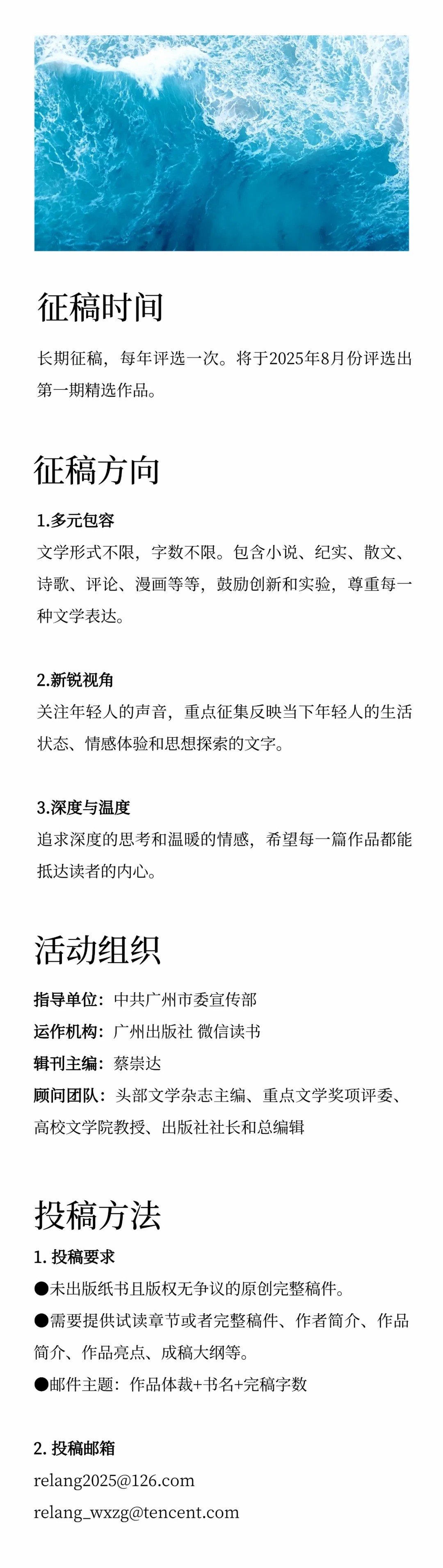 更多详情,请关注《热浪》官方微博、微信公众号,获取最新动态。让我们一起在《热浪》中掀起文学的新浪潮,期待你的来稿!