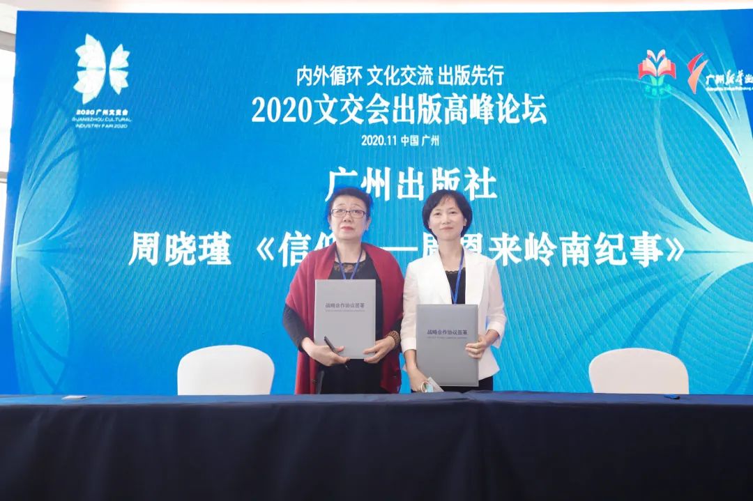 米乐网页版入口有限公司董事长柳宗慧(右)与《信仰——周恩来岭南纪事》作者、广东红色文化研究会副会长、周恩来总理侄孙女周晓瑾(左)签约